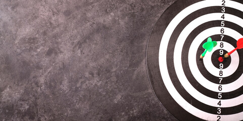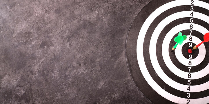 Darts and arrows. Hitting target, success business concept. Empty copy space for your text and design