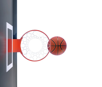 orange ball above the hoop net. Concept of success, scoring points and winning, transparent background