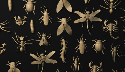 Panorpa communis insect on a green leaf. Common scorpion fly in the garden