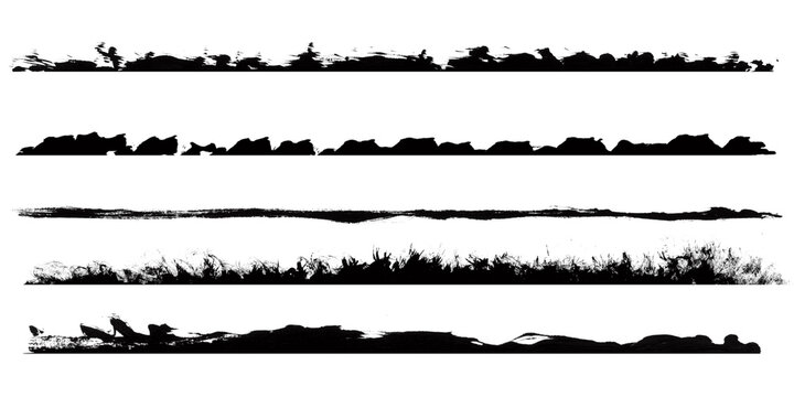 Four grunge brush stroke lines isolated on transparent background, abstract artistic elements for design