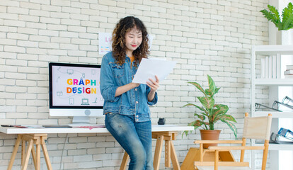 Diverse coworkers collaborating at modern office desk reviewing documents and screens