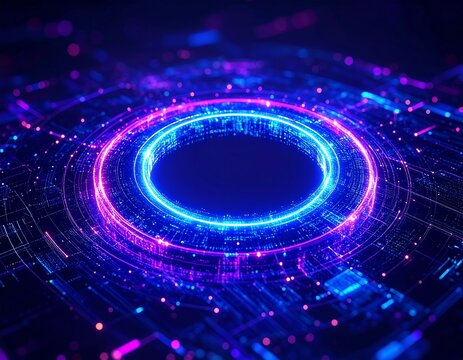 A vibrant circuit board design with blue lights creates a futuristic loading screen. This high end visual offers a polished tech aesthetic for digital applications.