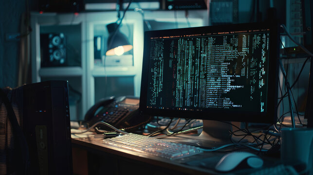 High-tech coding session in a dimly lit room.