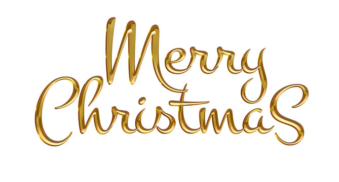 Isolated text Merry Christmas written in golden script font. PNG Transparent Background.