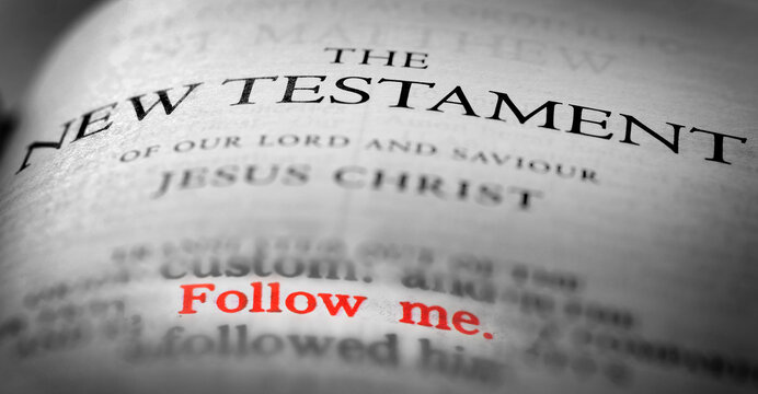 Bible New Testament Christian Gospel with the verse Follow Me in Red