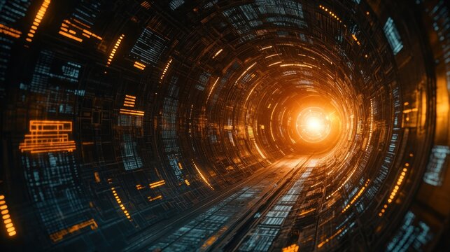 Sci-fi tunnel with glowing data