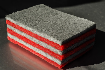 Green sponge, scouring pad or scrubbing pad. Isolated in white background.