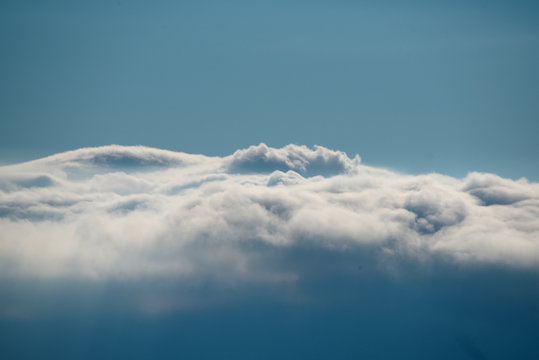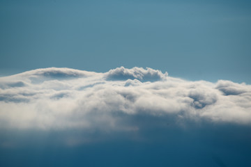 Spectacular view of clouds forming in the sky with sun light. The clouds are dense and voluminous, creating a breathtaking and dynamic atmosphere