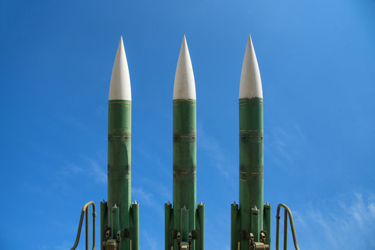 Ballistic missiles are ready to launch. Weapons of mass destruction. Arms race.