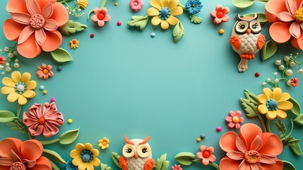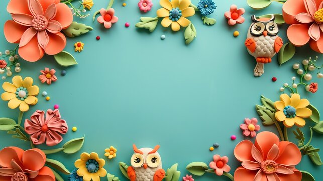 The flowers are 3-D,  with sculpted petals,  and are interspersed with stylized leaves and smaller blossoms