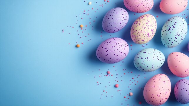 Vibrant colorful easter eggs decorating bright background