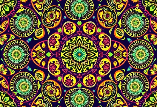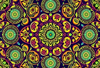 Intricate repeating ethnic Easter egg circle pattern, vibrant colors, seamless design, easter,  swirl