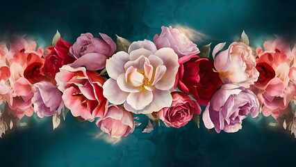 Vignette of turquoise, navy, green floral wallpaper; tiled leaves & flowers Abstract gradient background, wallpaper,  blue