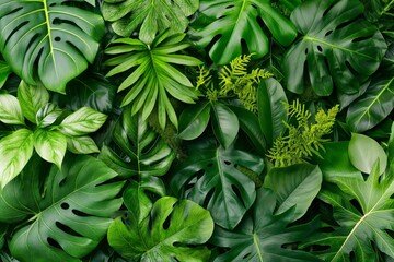 Closeup nature view of green leaf background. Flat lay, dark nature concept. Tropical leaves, abstract green leaves texture, nature background.