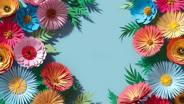 colorful flowers in paper cut illustration for summer sale design on pastel background. seamless looping overlay