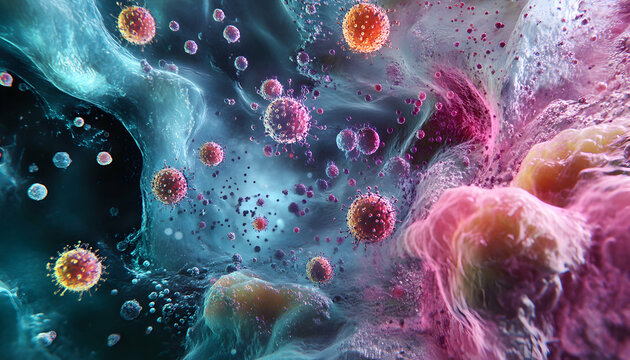 Microscopic View of Viruses: Background Banner with Copy Space AI Generated