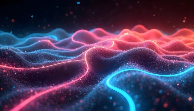 Colorful glowing kaleidoscope patterns on blue gradient background