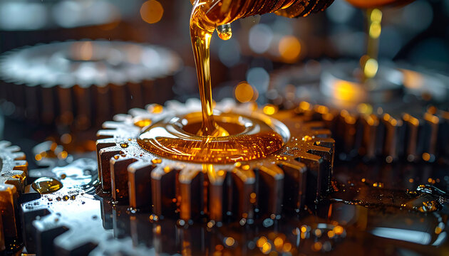 Lubrication and Precision: Capturing the critical role of lubrication in maintaining the smooth operation of precision engineering. A close-up view reveals oil being meticulously applied to gears.