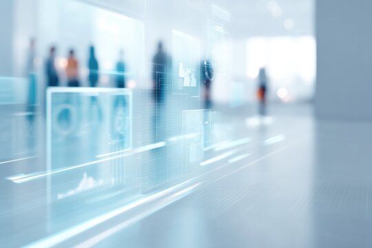 Surgical team in operating room with futuristic data overlay
