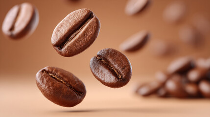 Coffee beans spinning and falling in mid air for dynamic beverage design