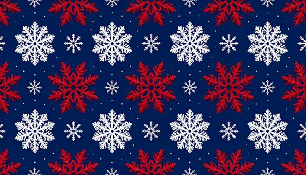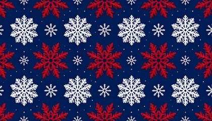 Decorative seamless pattern of white snowflakes on a deep blue backdrop, perfect for holiday and winter designs, festive, seasonal, and creative
