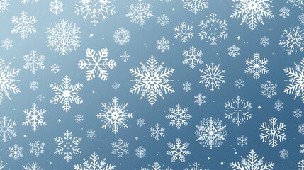 White snowflakes on a plain white or blue background, highlighting their unique symmetrical patterns. SEAMLESS PATTERN. SEAMLESS WALLPAPER.