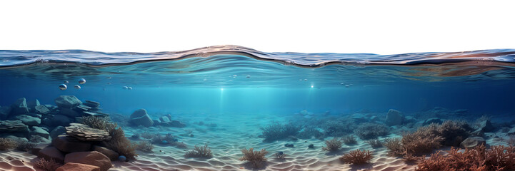 calm underwater view of turquoise water reflecting sunlight over light beige sand in paradise nature seascape landscape wallpaper background