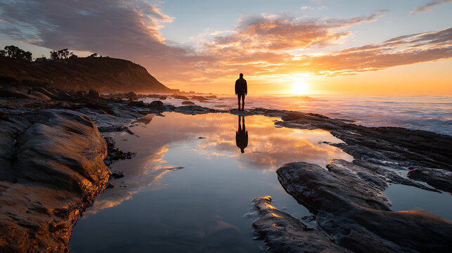 Solitary contemplation at serene sunset beach