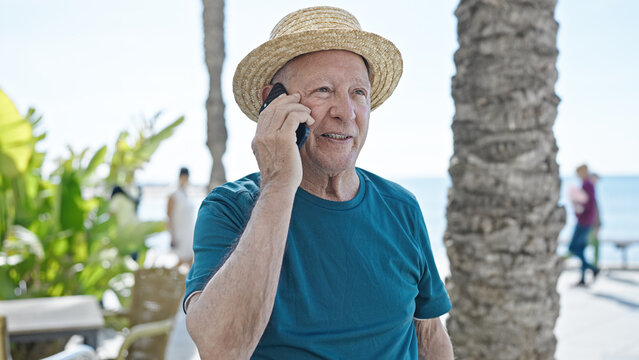 Senior man relaxing on seaside promenade
