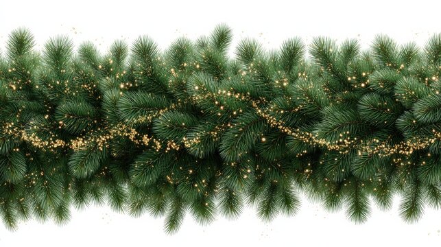 Wavy seamless Christmas garland with fir branches, lights, and sparkles for banners and cards during the festive season