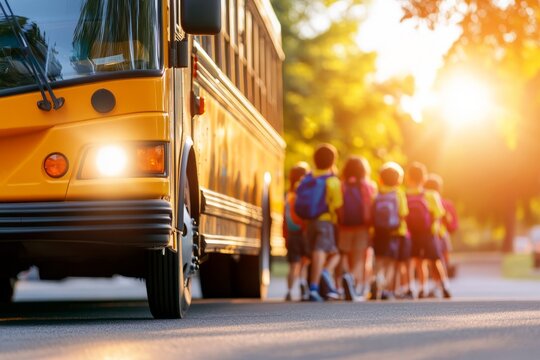 An empty vintage bus interior with orange-brown leather seats bathed in warm sunlight. Concept Vintage bus interior, orange-brown leather seats, warm sunlight, nostalgic travel, retro transport