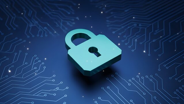 Abstract Data Encryption Symbol with Glowing Padlock on Dark Cybersecurity Background
