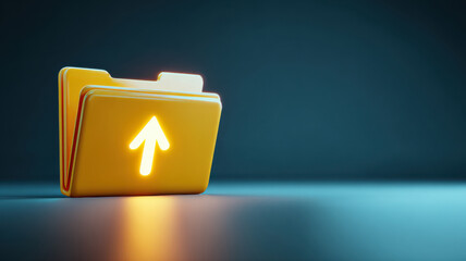 Glowing digital file floating in virtual cyberspace, representing cloud storage, data flow, secure information management, modern technology, network system, digital archive, automated processing.