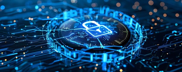 Digital lock symbol on futuristic security interface dashboard