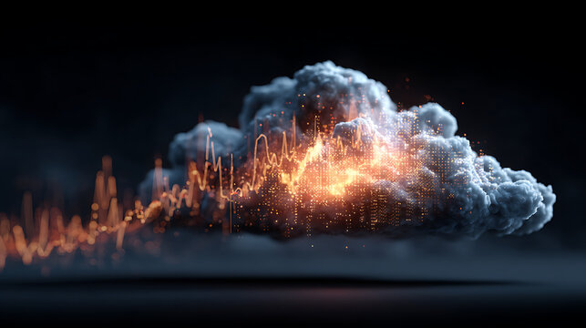 futuristic digital cloud with glowing encryption keys and analytical graphs in motion representing secure technology data protection cloud system online storage and cyber innovation