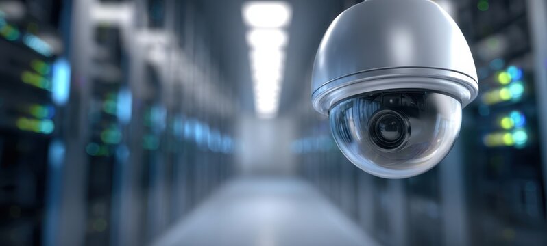 Modern data center interior with server racks and glowing indicator lights in a secure high tech facility corridor