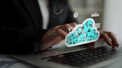 Cloud based file storage with advanced security , Digital system for transferring documents , Businessman transfer and online data storage for business network, data backup of business.