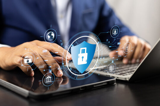 Global network security, Businesspeople safeguard personal data with encryption technology, Cybersecurity and data protection  secure financial transactions online,Safeguarding data from cyber-attacks