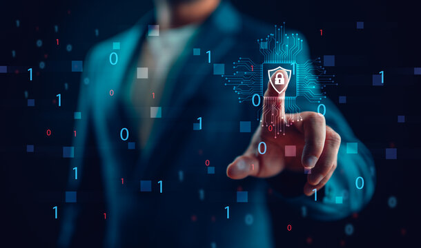Cybersecurity protects digital information, computer systems, and networks, data privacy, secure passwords, and encryption to safeguard and ensure privacy. business technology shield safety hacker