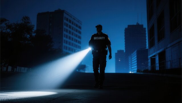 Security Guard In Black Stands With His Back To Schools And Universities