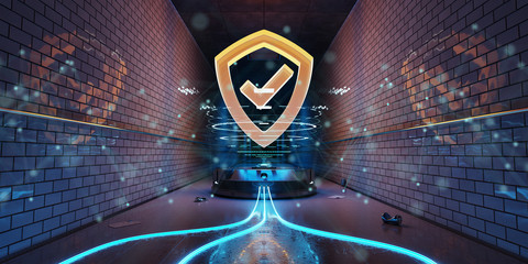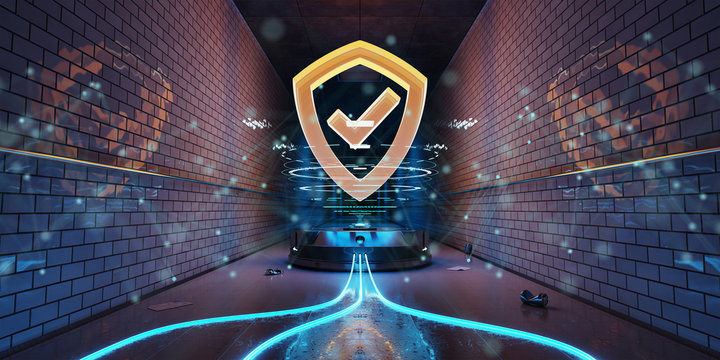 Digital padlock for computing system on dark blue background, cyber security technology for fraud prevention and privacy data network protection concept