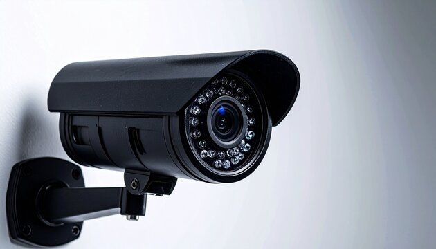 Security Camera Mounted On White Wall
