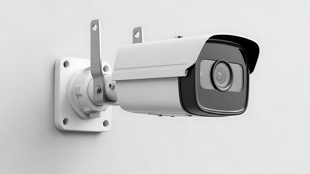 Security Camera Mounted on White Wall.
