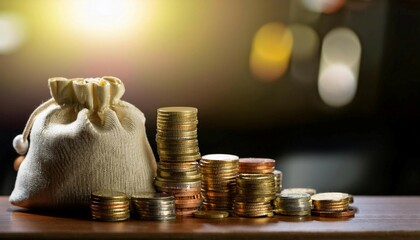 Piggy bank surrounded by stacks of coins and scattered currency represents savings and financial planning. image conveys sense of security and prosperity, ideal for themes related to finance