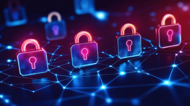2026 golden lock securing digital future with holographic cybersecurity interface
