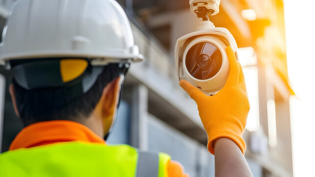 Worker Installing CCTV Camera