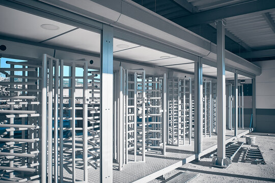 Many turnstiles through which fans can enter the stadium using an electronic fan card.