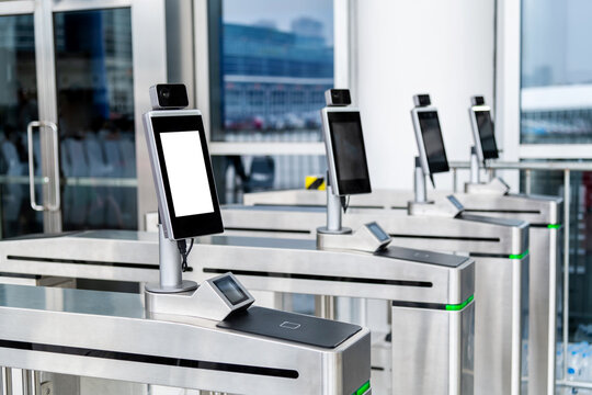 Electronic turnstile. Access system to the building. Pass through the passes. Security systems for rooms. Several turnstiles are installed nearby. Check Point. Automatic checkpoint. Building security.