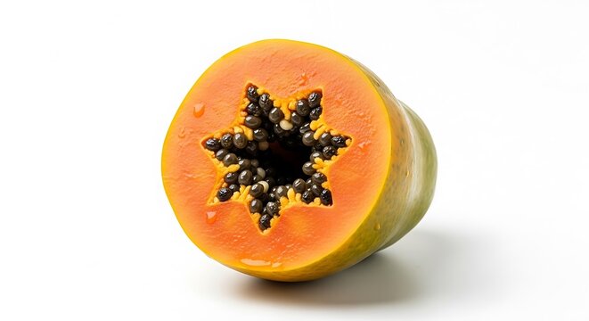 Fresh Papaya Half with StarShaped Seed Cavity.