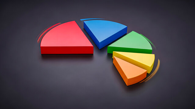 3D pie chart illustration on a dark background with colored segments